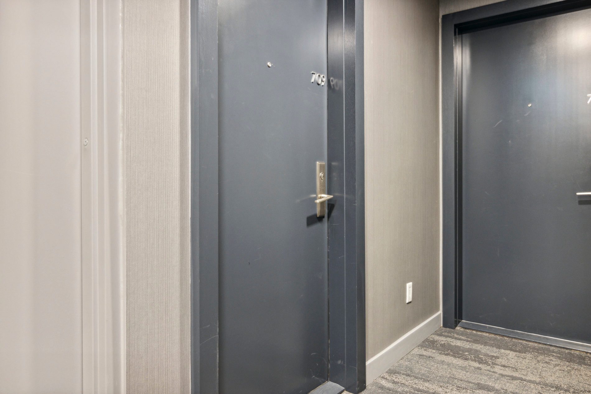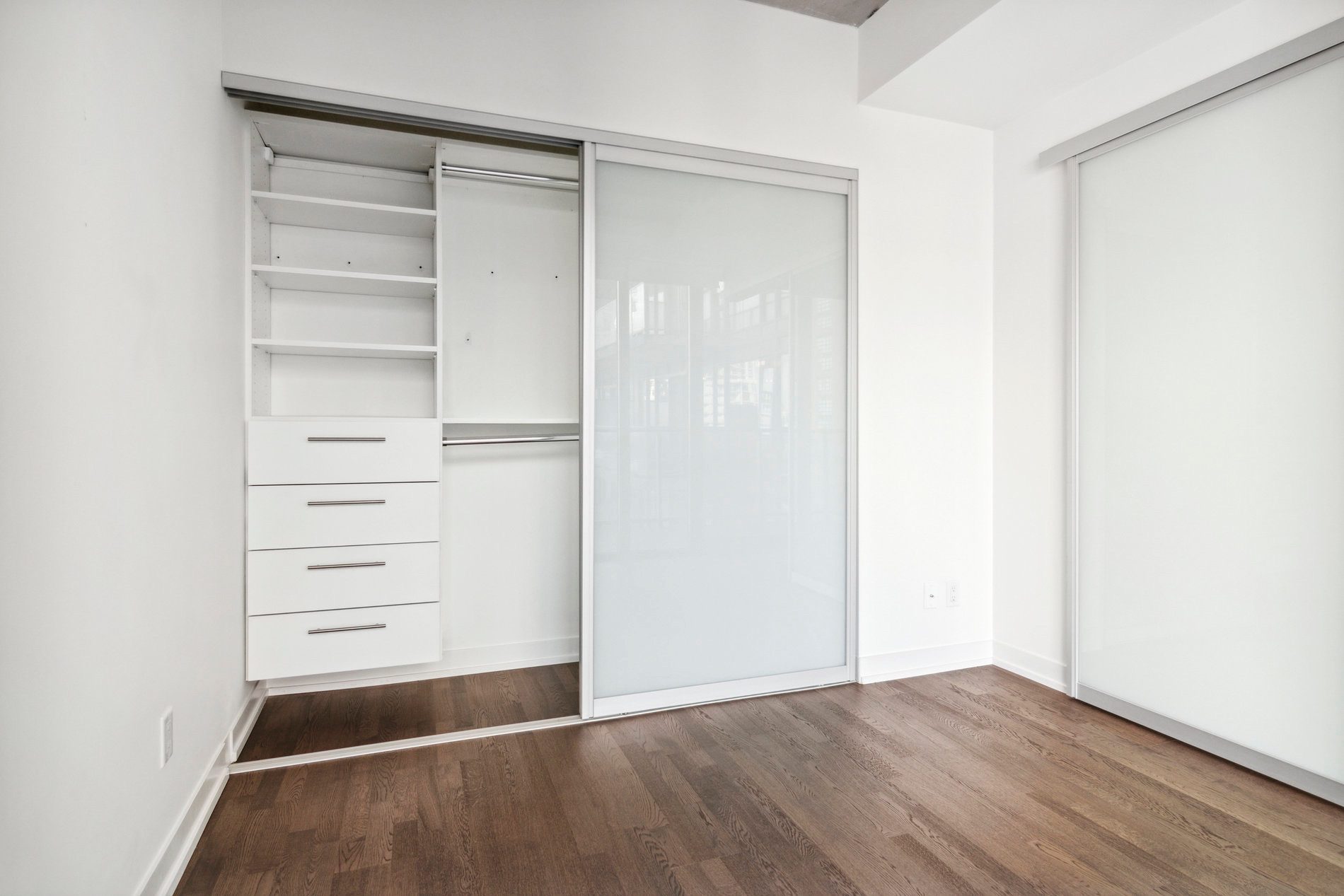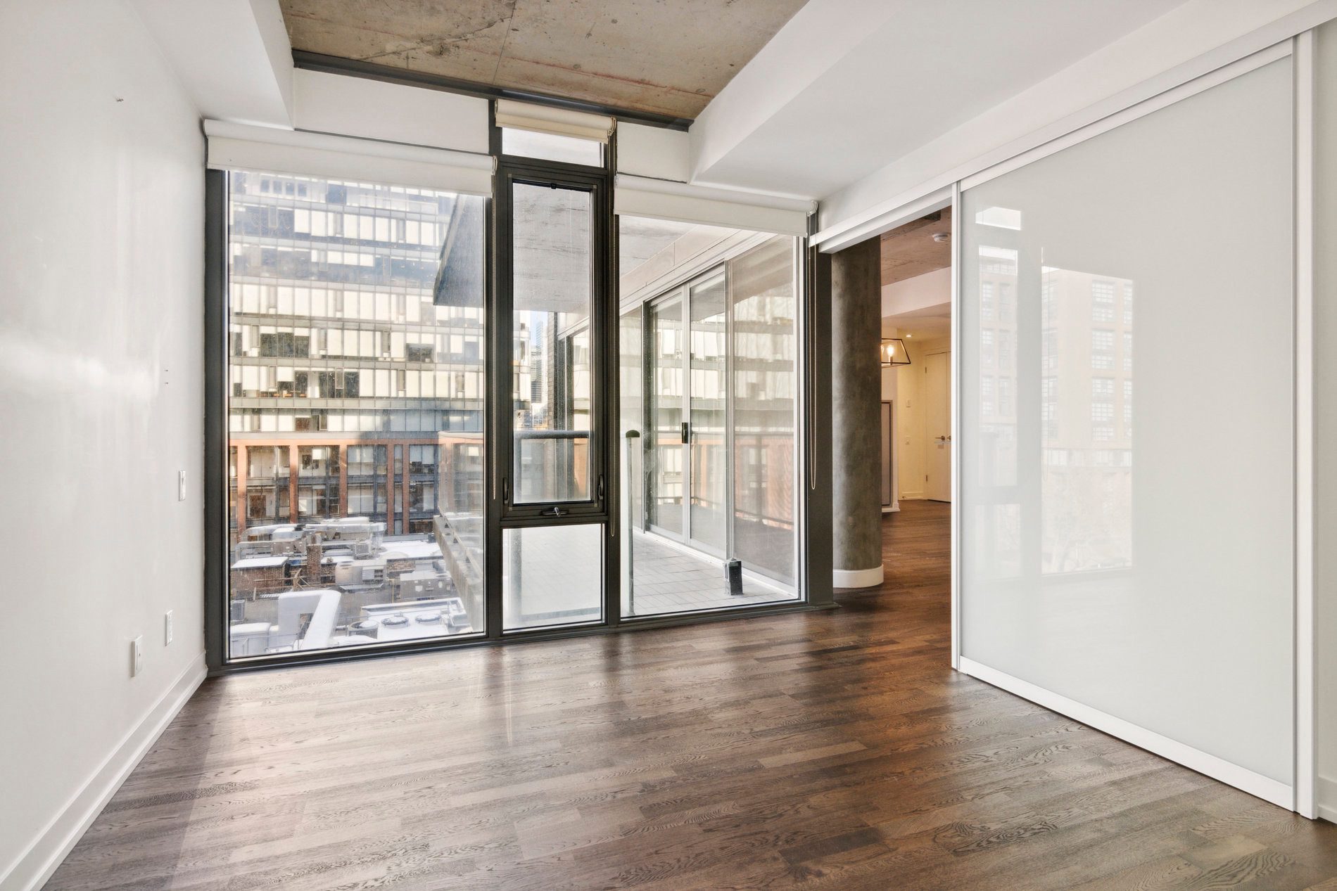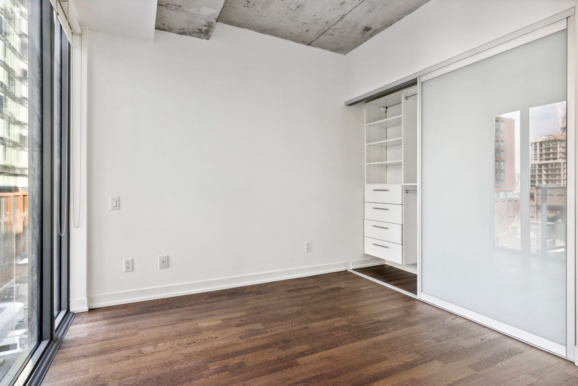Perched above the historic buildings of Toronto’s fashionable King West neighbourhood lies this stylish 2-beds, 2-baths, open-concept soft loft with unobstructed views and a private terrace. Features include a large kitchen with a centre island, SS appliances, quartz counters & wood floors throughout. Suite 709’s convenient split-bedroom floor plan consists of an enviable primary bedroom with a walk-in closet, built-in cabinetry, ensuite bathroom and skyline views of the city. The second bedroom’s northerly views are no less impressive and offer an extra-large closet with built-ins, and comfortably fits a queen size bed.